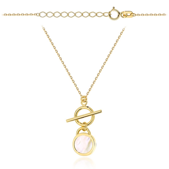 Złoty naszyjnik 585 nowoczesny z masą perłową w złotej oprawie