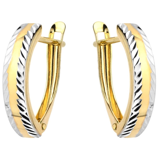 Wyjątkowe kolczyki wykonane z żółtego złota próby 585 to połączenie klasyki z nutą nowoczesności. Ich charakterystycznym elementem są dekoracyjne pasy z białego złota, ozdobione precyzyjnym diamentowaniem, które dodaje biżuterii niepowtarzalnego blasku. To model, który świetnie sprawdzi się zarówno w codziennych stylizacjach, jak i podczas wyjątkowych uroczystości, podkreślając elegancję i pewność siebie.