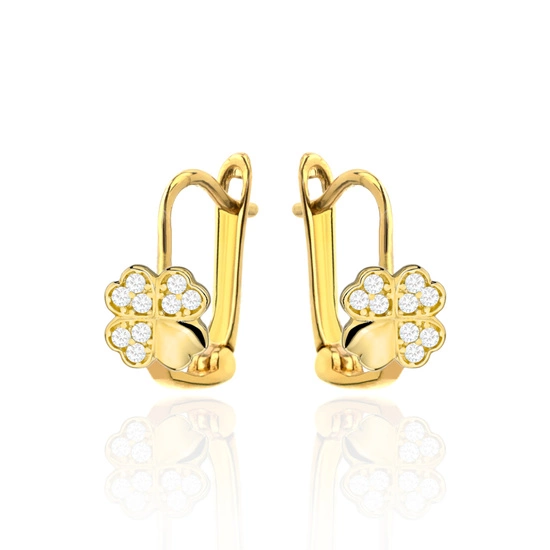 Złote kolczyki próby 585 w kształcie koniczynek to symbol szczęścia i subtelnej elegancji. Ich wyjątkowy design łączy połysk gładkiego złota z blaskiem drobnych cyrkonii, które otaczają koniczynkę delikatnym świetlistym akcentem. To biżuteria, która emanuje szczęściem, a jednocześnie pozostaje niezwykle elegancka i uniwersalna.