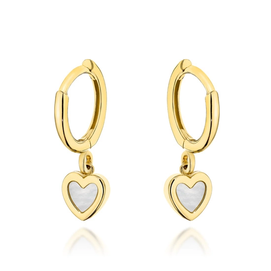 Złote kolczyki 585 kółeczka z serduszkami z masą perłową