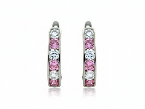 Kolczyki z białego złota przecinki z różowymi cyrkoniami