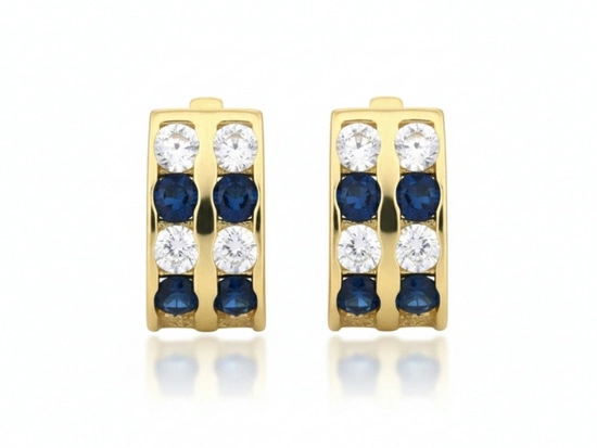 Złote kolczyki z niebieskiemi i białymi cyrkoniami