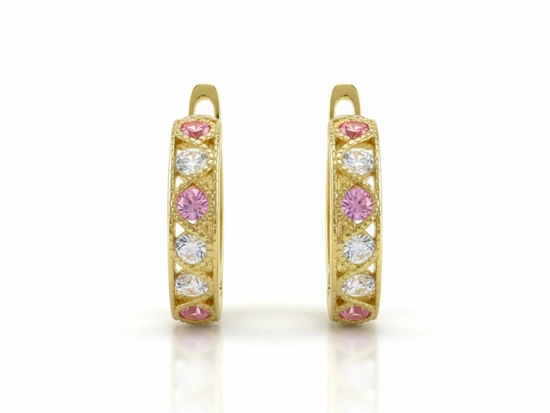 Kolczyki złote dla dziewczynki z różowymi cyrkoniami