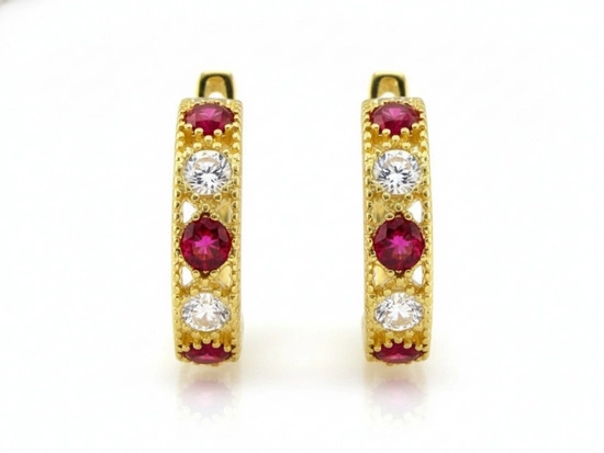 Kolczyki złote dla dziewczynki z czerwonymi cyrkoniami