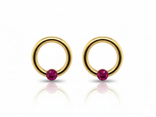 Ringi na sztyfcie z małym różowym kamieniem