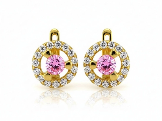 Delikatne złote kolczyki z różowym oczkiem