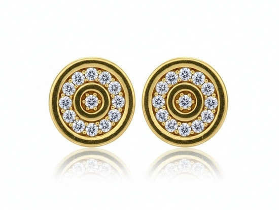 Złote kolczyki okrągłe wkrętki z cyrkoniami