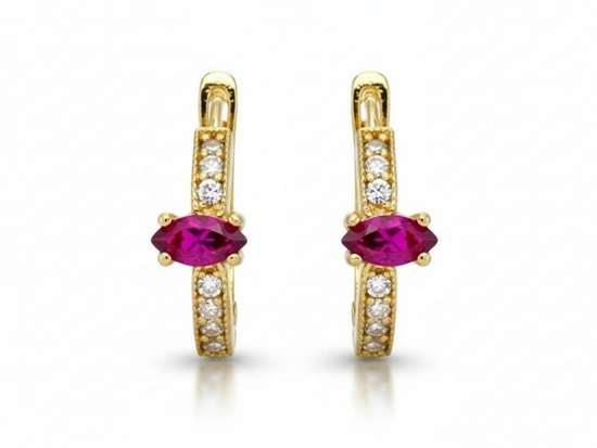 Złote kolczyki dla dziewczynki z różowym kamieniem