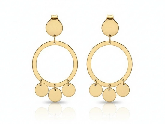 - Złote kolczyki o ponadczasowym kształcie, które będą pięknym dodatkiem dla każdej Pani. Nasze surowe normy kontrolne oraz 20 letni staż w branży jubilerskiej gwarantuje Państwu zakup biżuterii najwyższej jakości. W połą
