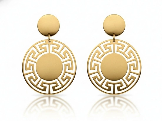 Kolczyki złote wiszące okrągłe z modnym greckim wzorem