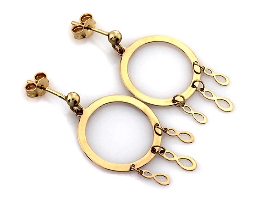 Kolczyki złote kółka z wiszącymi nieskończonościami