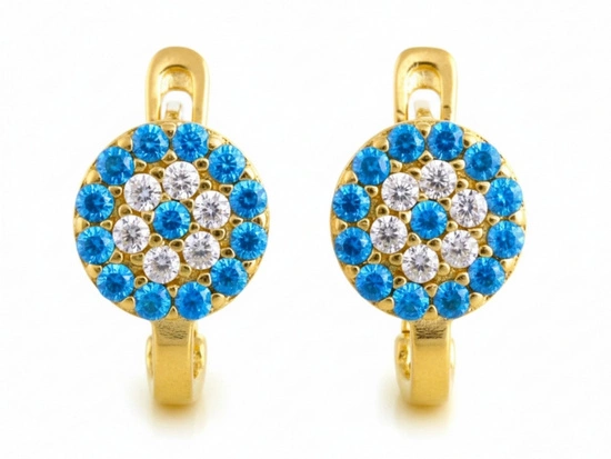 Złote kolczyki małe angielskie z niebieskimi cyrkoniami