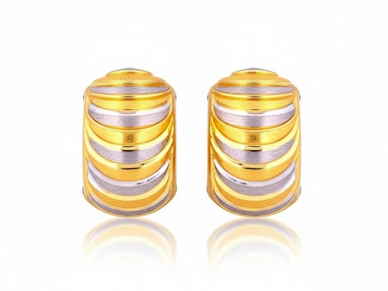 Kolczyki złote dwukolorowe blaszki frezowane z satyną