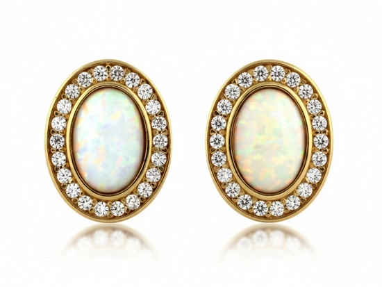 Złote kolczyki na sztyfcie z opalem i cyrkoniami markiza