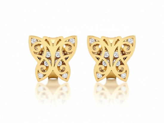 Złote kolczyki motylek na sztyfcie ażurowy przestrzenny