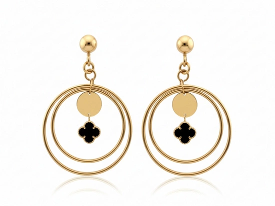 Kolczyki złote wiszące z czarnym kwiatkiem