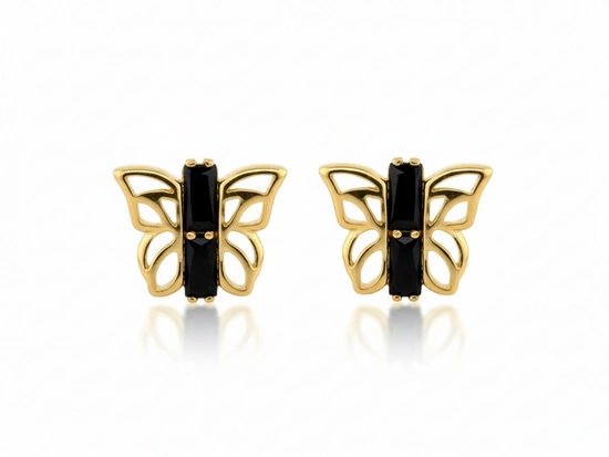 Kolczyki złote na sztyfcie z motylkiem z czarnymi kamieniami