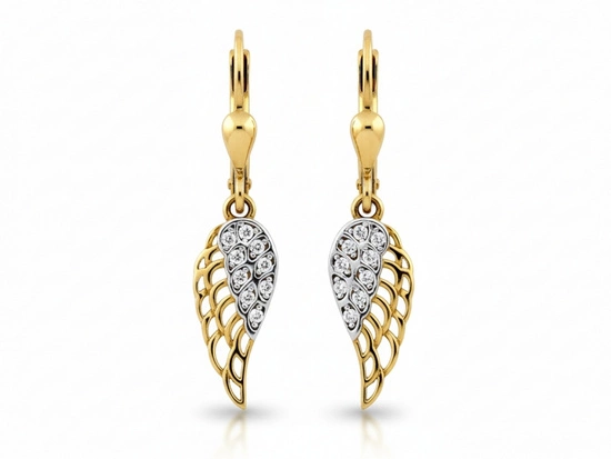 Kolczyki złote z wiszącymi dwukolorowymi skrzydłami