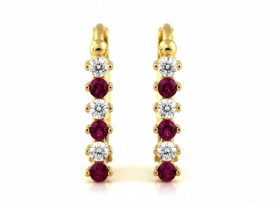 Kolczyki złote jak przecinki z czerwonymi i białymi cyrkoniami