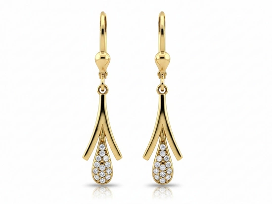 Kolczyki złote wiszące maczugi z cyrkoniami