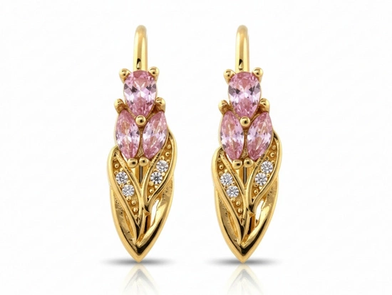 Złote kolczyki zapięcie angielskie z różowymi cyrkoniami