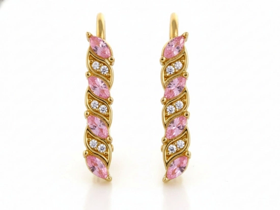 Kolczyki złote z białymi i różowymi cyrkoniami