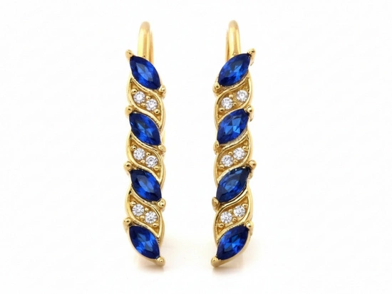 Kolczyki złote angielskie z niebieskimi i białymi kamieniami