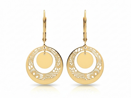 Złote kolczyki wiszące okrągłe ażurowe