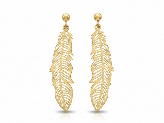Kolczyki złote długie wiszące ażurowe pióra na sztyfcie