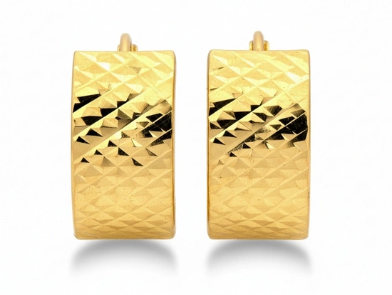 - Złote kolczyki o ponadczasowym kształcie, które będą pięknym dodatkiem dla każdej Pani. Nasze surowe normy kontrolne oraz 20 letni staż w branży jubilerskiej gwarantuje Państwu zakup biżuterii najwyższej jakości. W połą