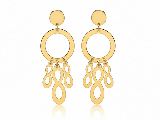 Kolczyki złote długie z wiszącymi ruchomymi nieskończonościami