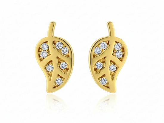 Złote kolczyki liście na sztyfcie z cyrkoniami