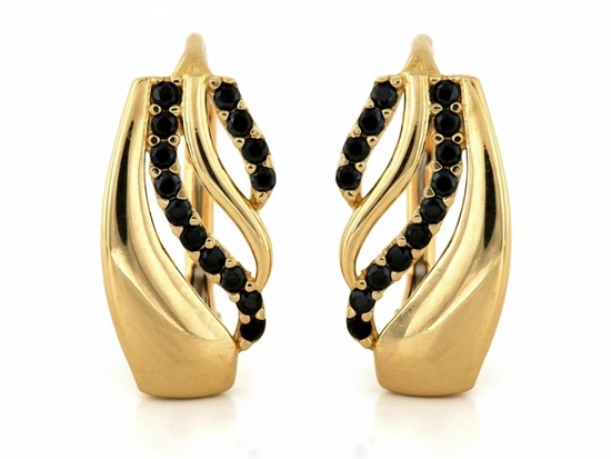 Kolczyki złote angielskie z czarnymi cyrkoniami