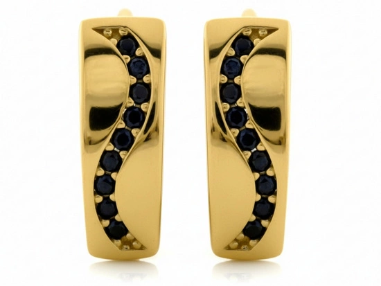 Kolczyki złote angielskie z czarnymi cyrkoniami