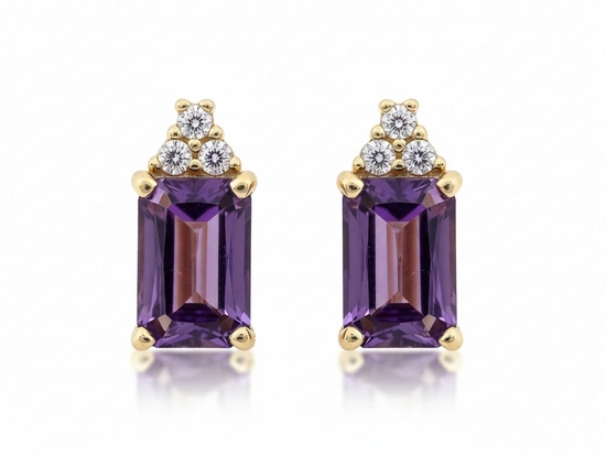 Złote kolczyki z ametystem na sztyfcie
