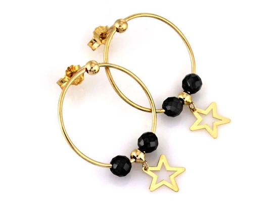 Kolczyki złote koła z wiszącą gwiazdką i czarnymi kamieniami