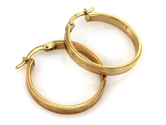 - Złote kolczyki o ponadczasowym kształcie, które będą pięknym dodatkiem dla każdej Pani. Nasze surowe normy kontrolne oraz 20 letni staż w branży jubilerskiej gwarantuje Państwu zakup biżuterii najwyższej jakości. W połą