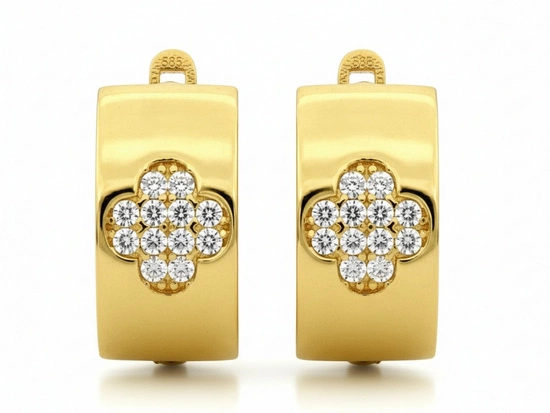 Kolczyki złote angielskie z wzorem koniczynki z cyrkonii