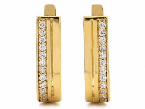 • Złote kolczyki o ponadczasowym kształcie, które będą pięknym dodatkiem dla każdej Pani. Nasze surowe normy kontrolne oraz 20 letni staż w branży jubilerskiej gwarantuje Państwu zakup biżuterii najwyższej jakości. W połą