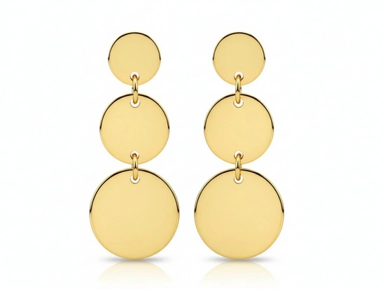 Kolczyki złote trzy okrągłe blaszki zapinane na sztyft