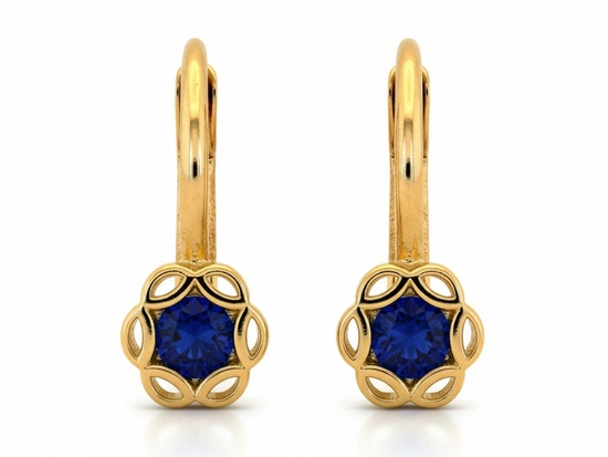 Złote kolczyki dla dziewczynki z ciemnym niebieskim oczkiem