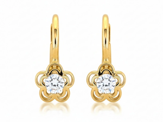 Kolczyki złote angielskie delikatne z kwiatkiem dla dziewczynki