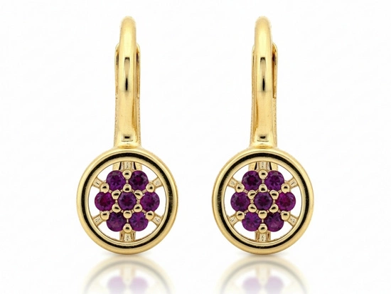 Kolczyki złote angielskie delikatne z czerwonymi cyrkoniami
