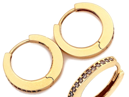 - Złote kolczyki o ponadczasowym kształcie, które będą pięknym dodatkiem dla każdej Pani. Nasze surowe normy kontrolne oraz 20 letni staż w branży jubilerskiej gwarantuje Państwu zakup biżuterii najwyższej jakości. W połą