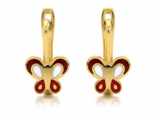 Kolczyki złote angielskie z emaliowanym motylkiem