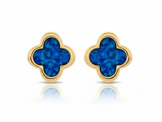 Kolczyki złota koniczyna kwiatek z niebieskim kamieniem na sztyfcie
