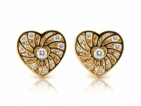 Złote kolczyki ażurowe serce na sztyfcie