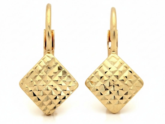 Złote kolczyki błyszczące kwadraty angielskie zapięcie