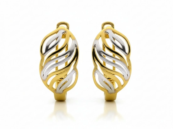 Kolczyki złote dwukolorowe ażurowe angielskie zapięcie
