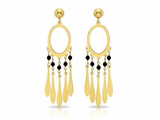 Kolczyki złote duże długie ruchome z czarnymi cyrkoniami